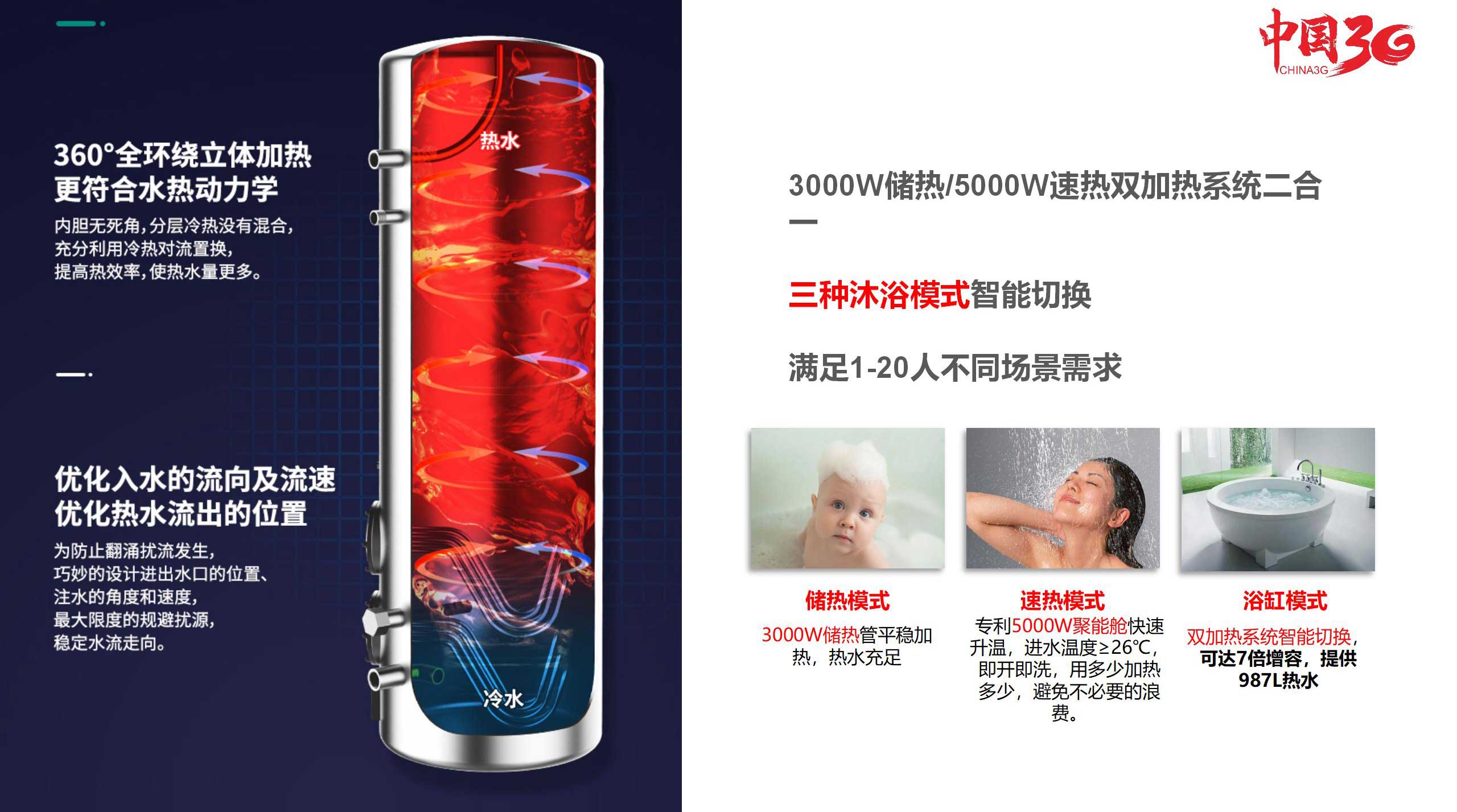 1.储热3000W/速热聚能舱5000W按需切换(进水≥26℃,即开即洗)