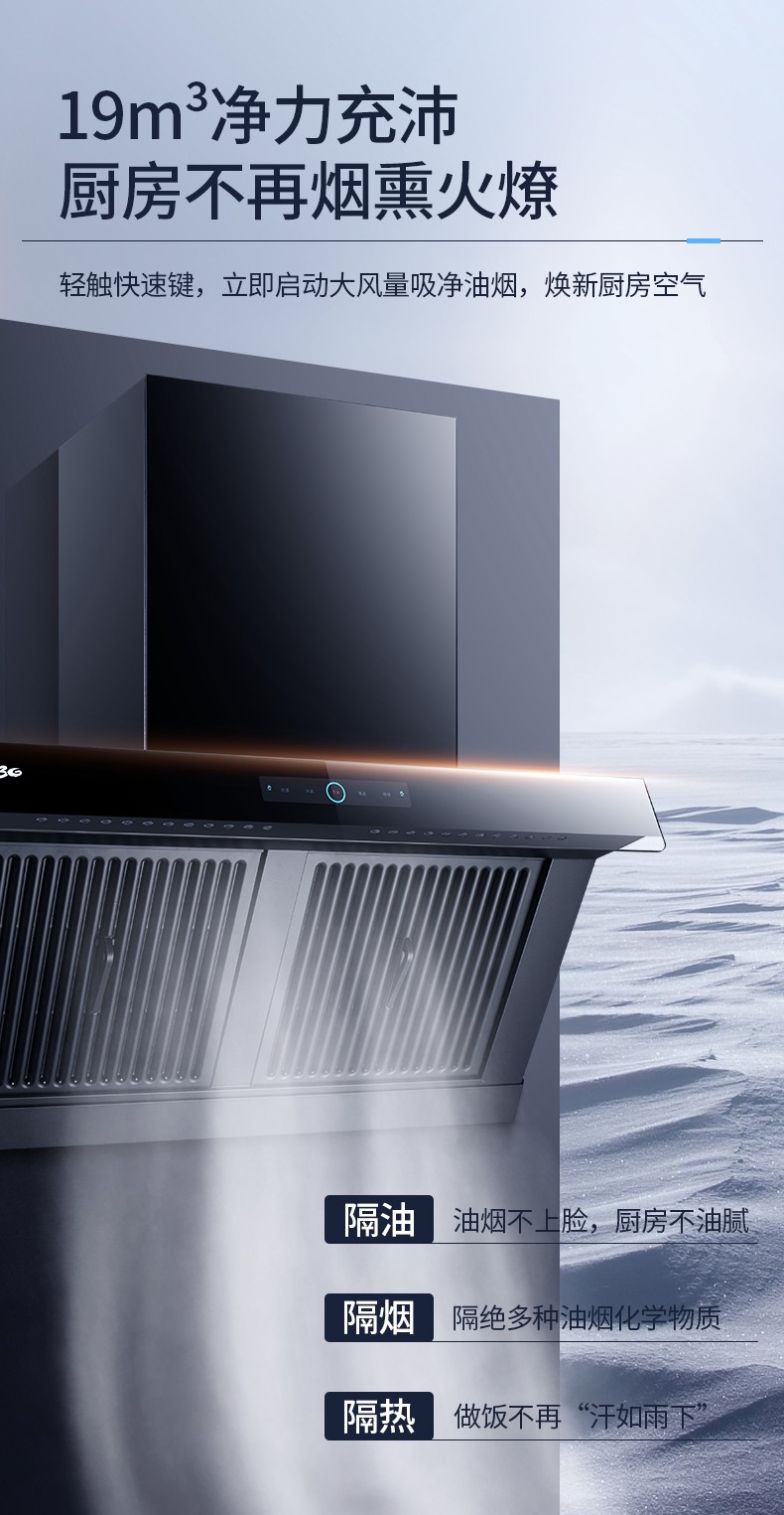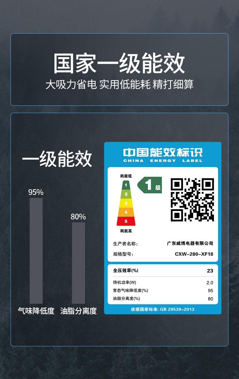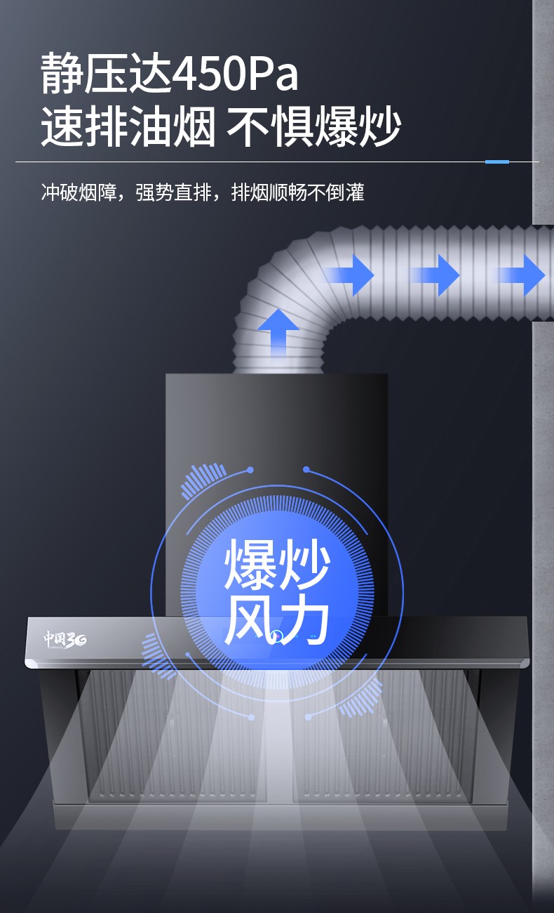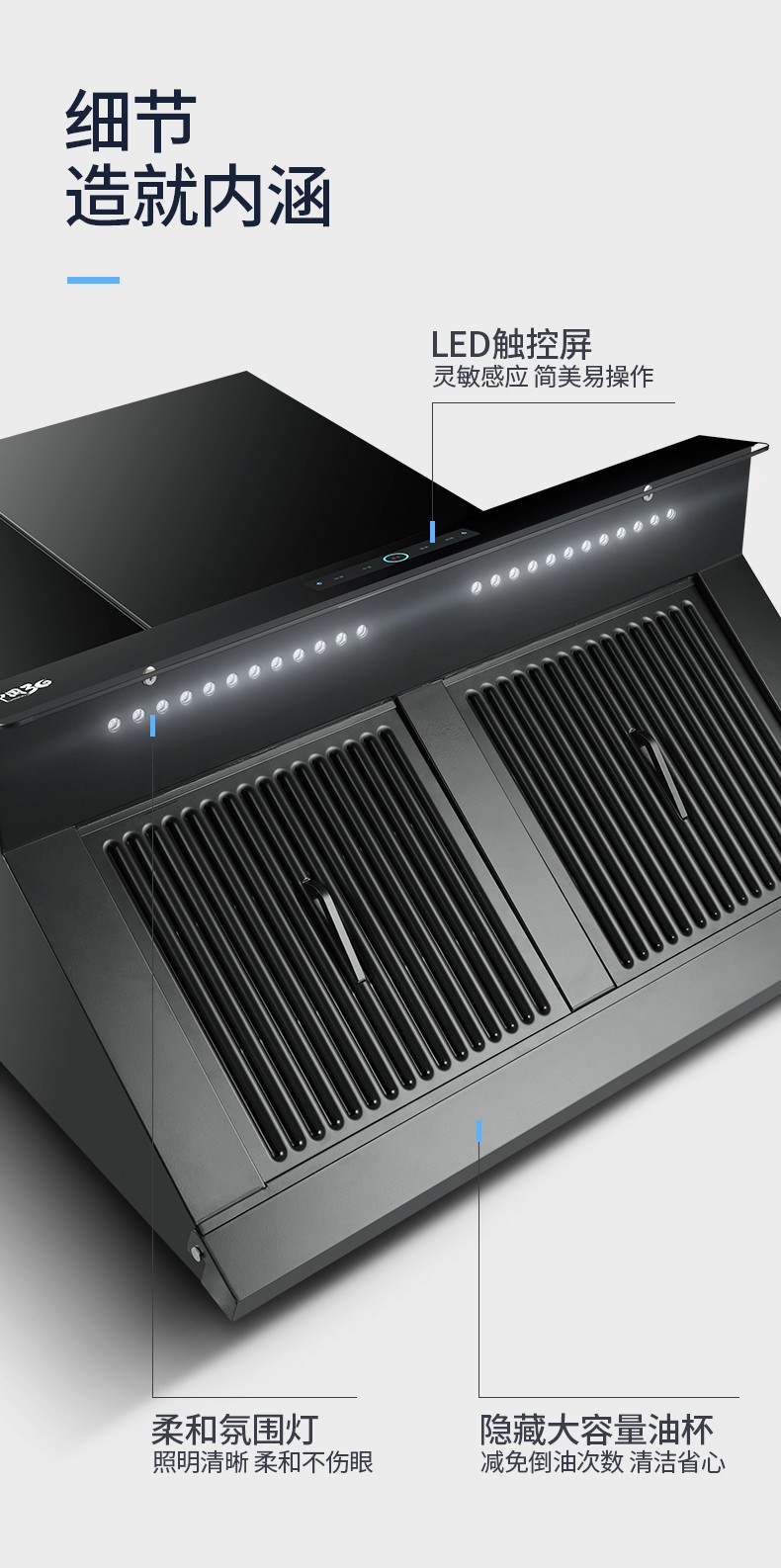 2、五重吸音降噪技术(风道,风机,风轮,壁重,排烟),享受静谧生活。