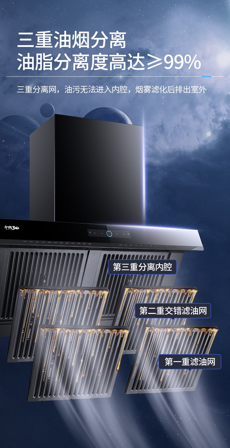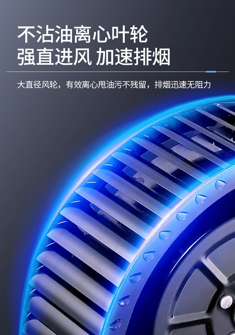 3、专利MS气流组织设计,不跑烟,不进油。前置油烟分离,内腔无油不用清洗。