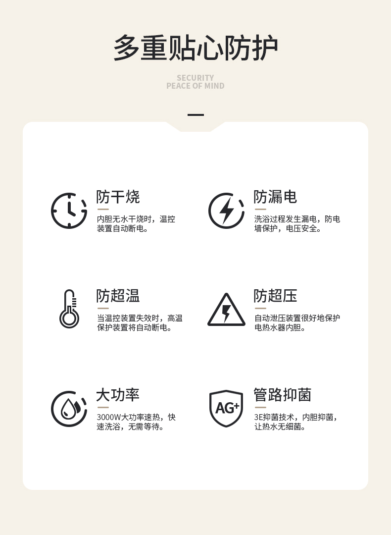 6、国家专利防电墙、机身全绝缘、地线带电预警、防干烧、防超温、防超压等多重安全保护。