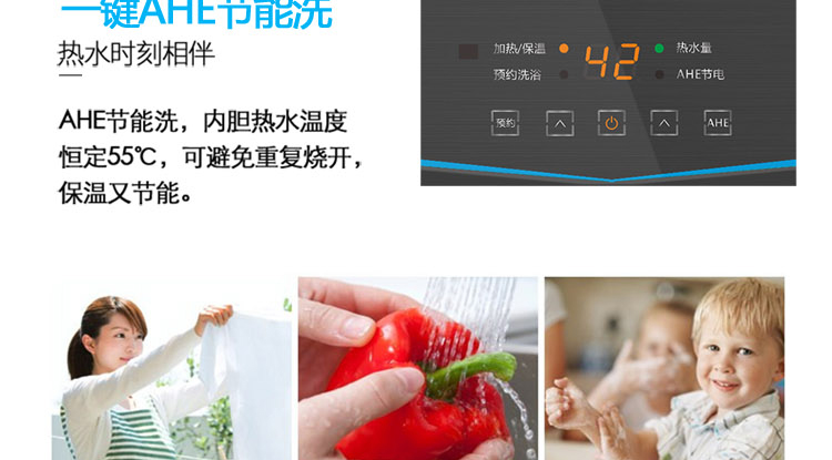 4.实时预约、热水量提示,洗浴温度自由设定。