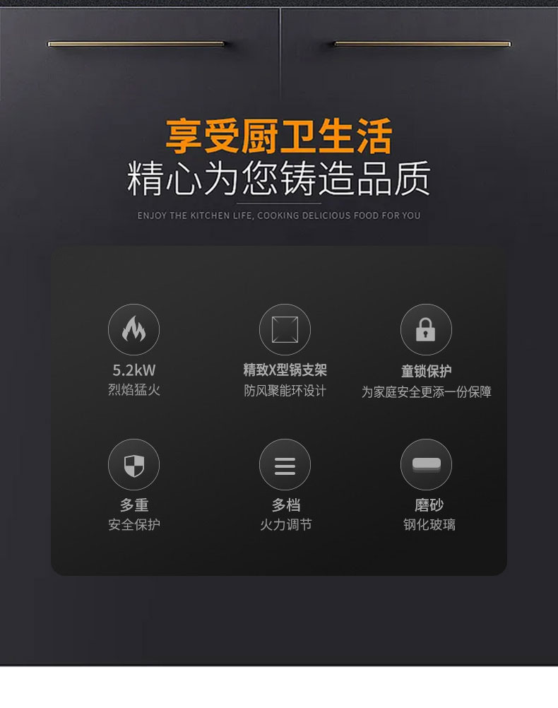 2、5.2KW大火力 :中式爆炒,1级能效、热效率63%。