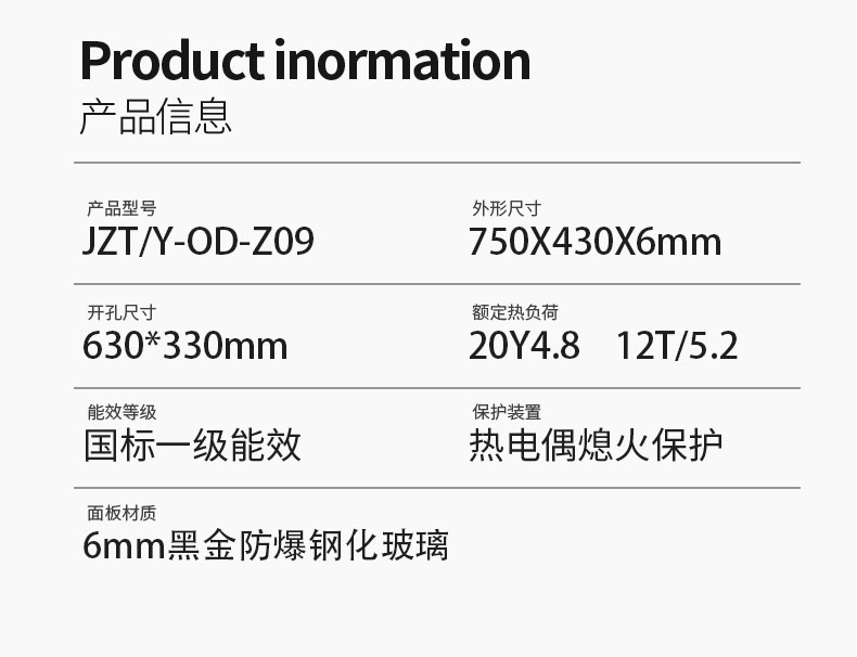 5、760mm黑晶防爆玻璃面板:时尚美观好清洁。