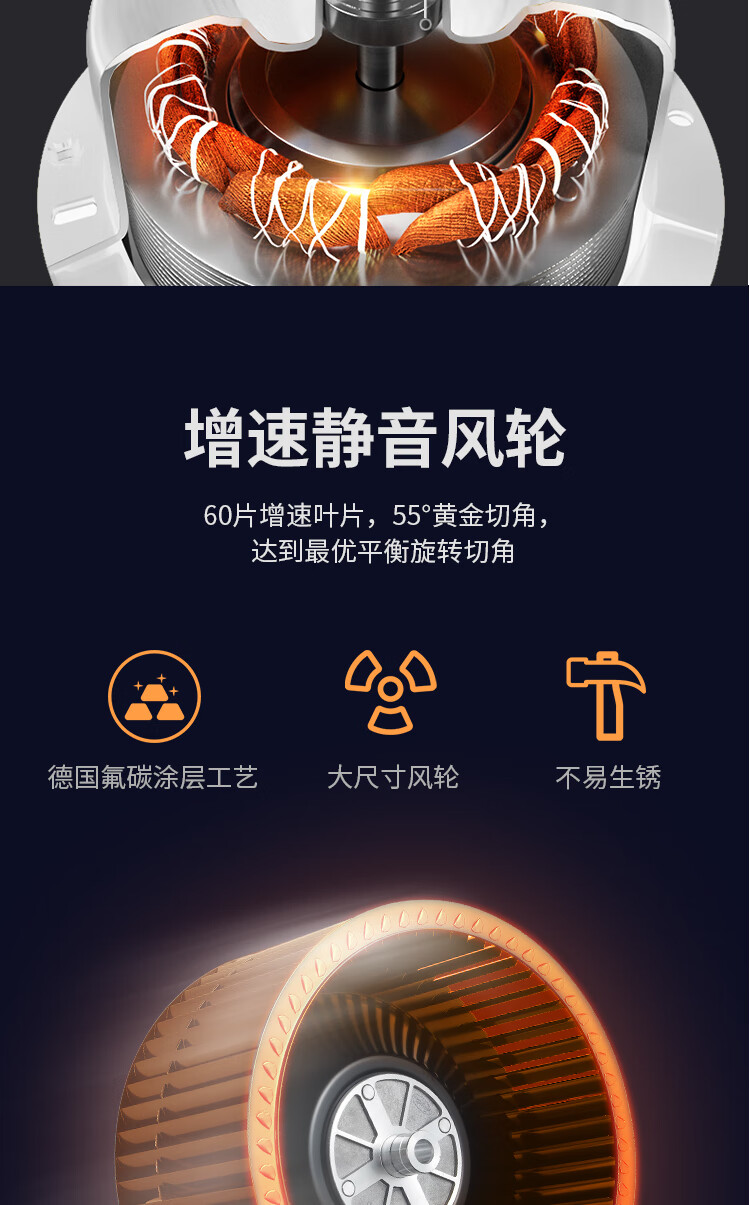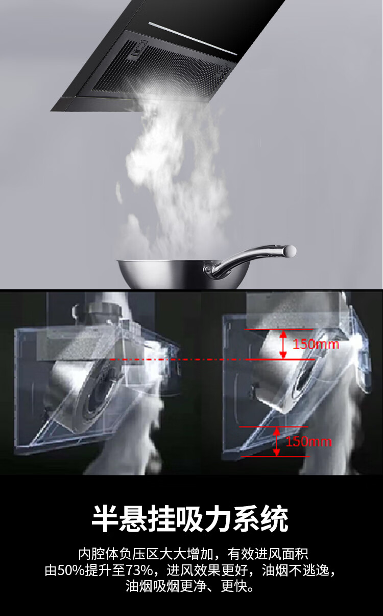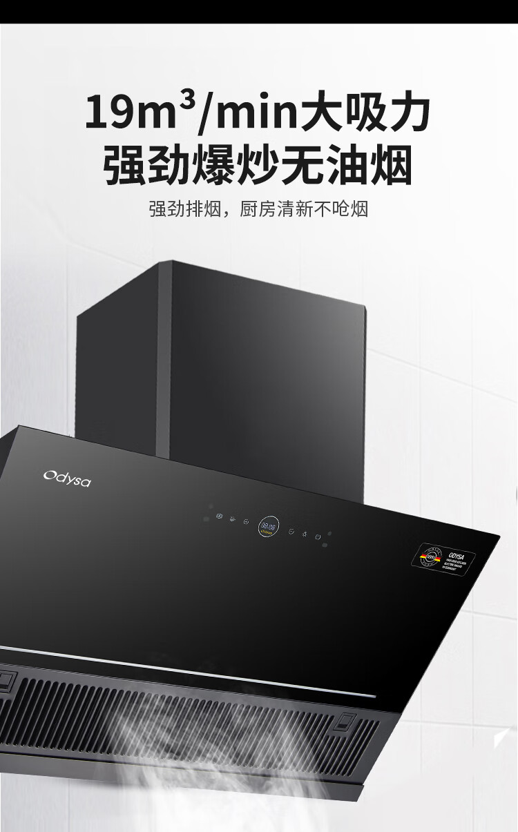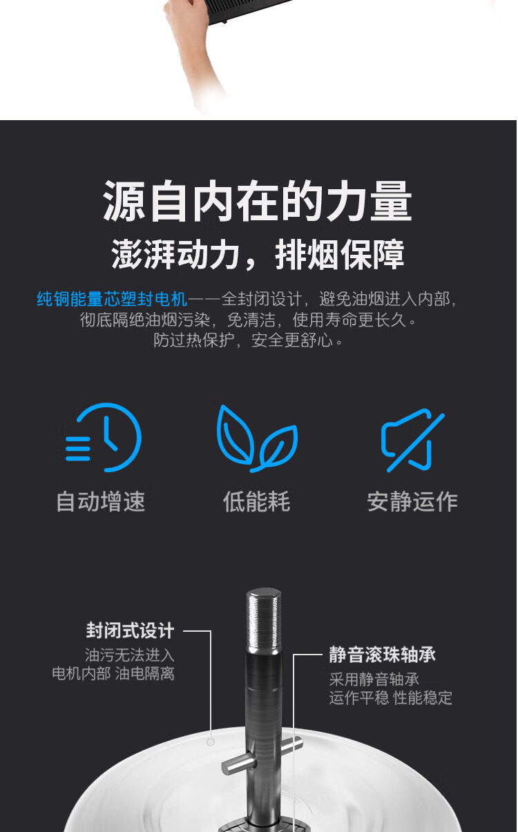 1、20m³/min强劲大吸力:厨房油烟秒净,不跑烟。