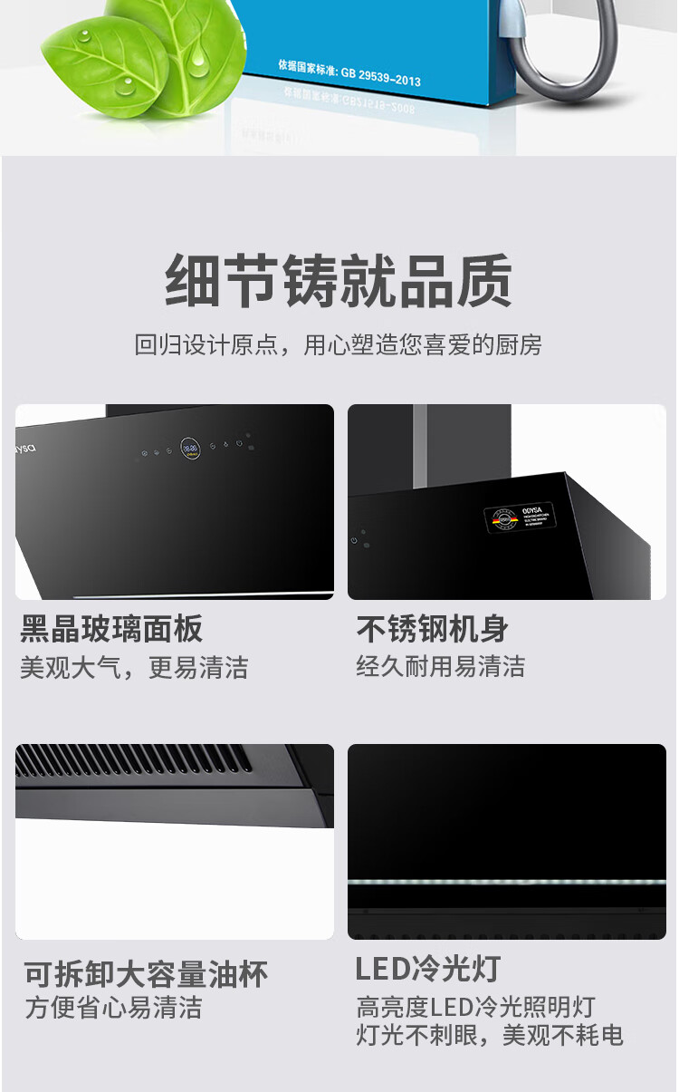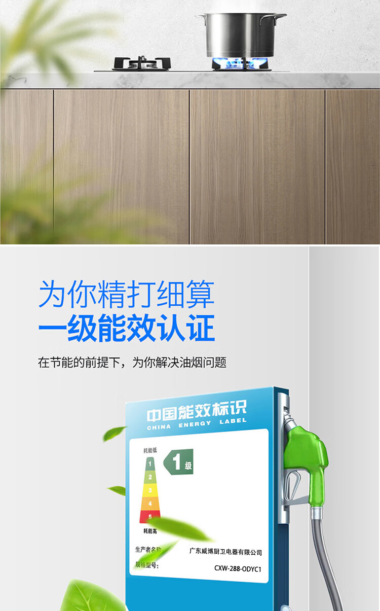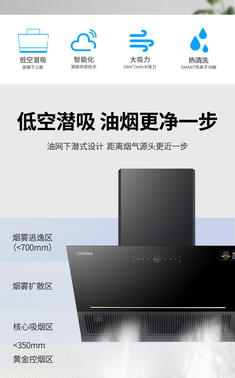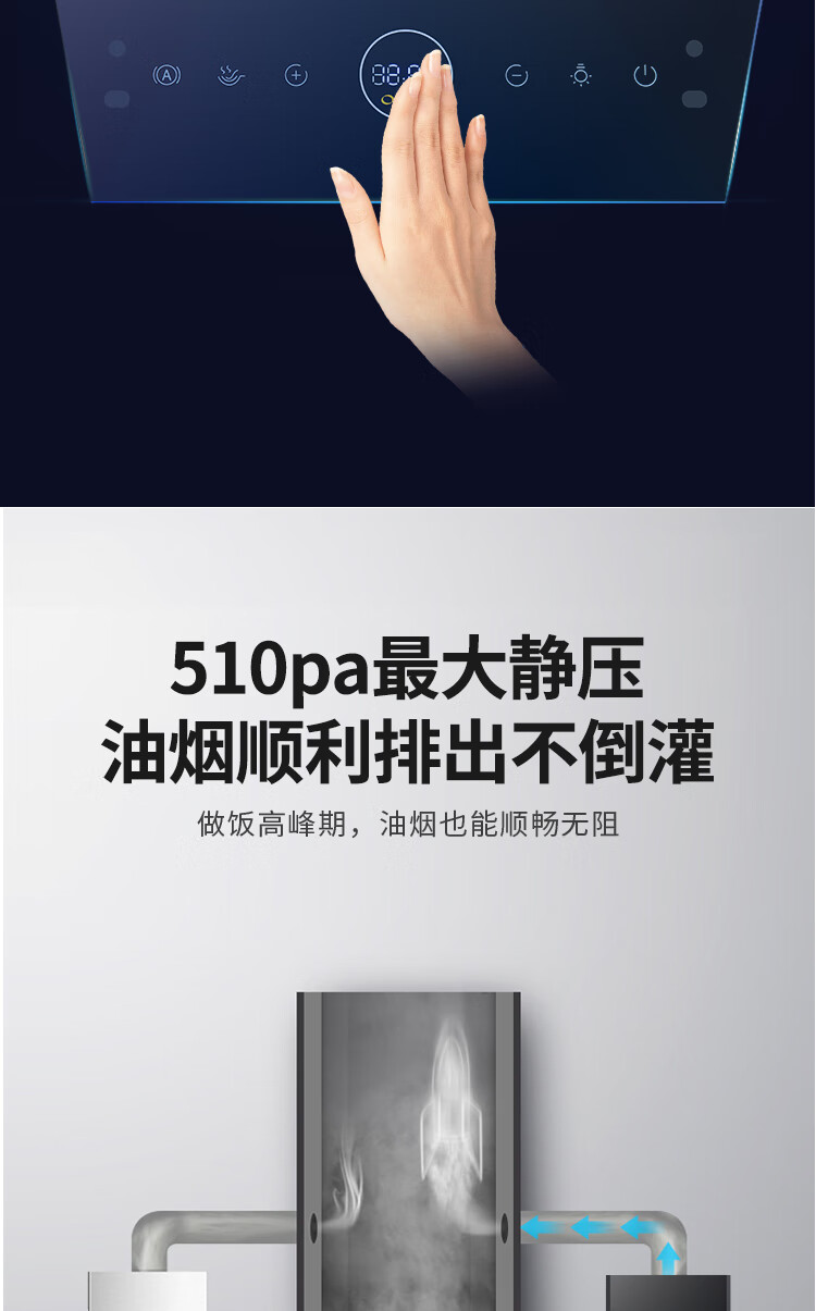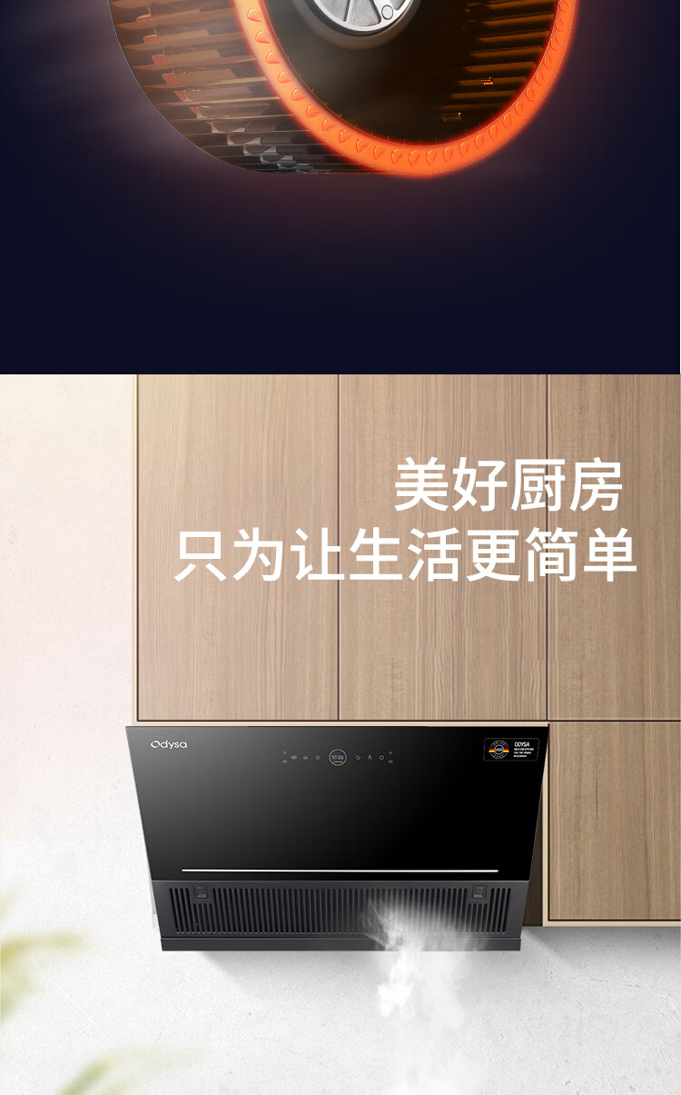 1、20m³/min强劲大吸力:厨房油烟秒净,不跑烟。