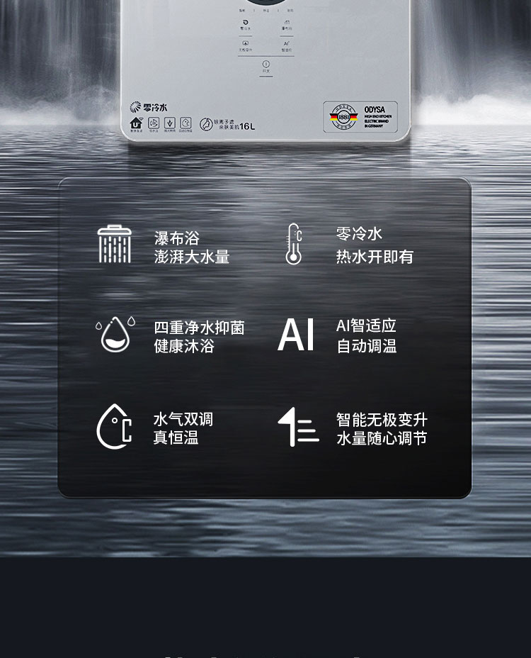 5、AI智能恒温技术,±1℃精准恒温:舒适热水体验,避免水温忽冷忽热。