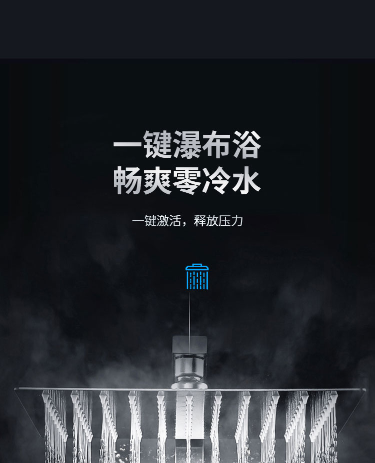 6、一键瀑布浴 :全屋供水,强劲动力,畅享淋浴。