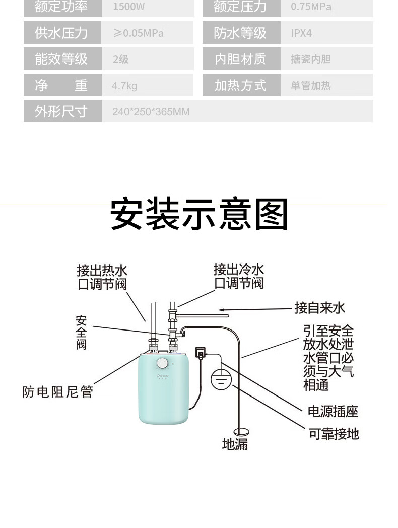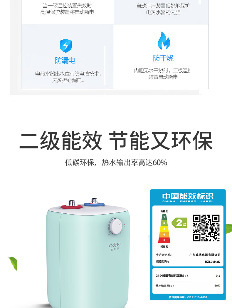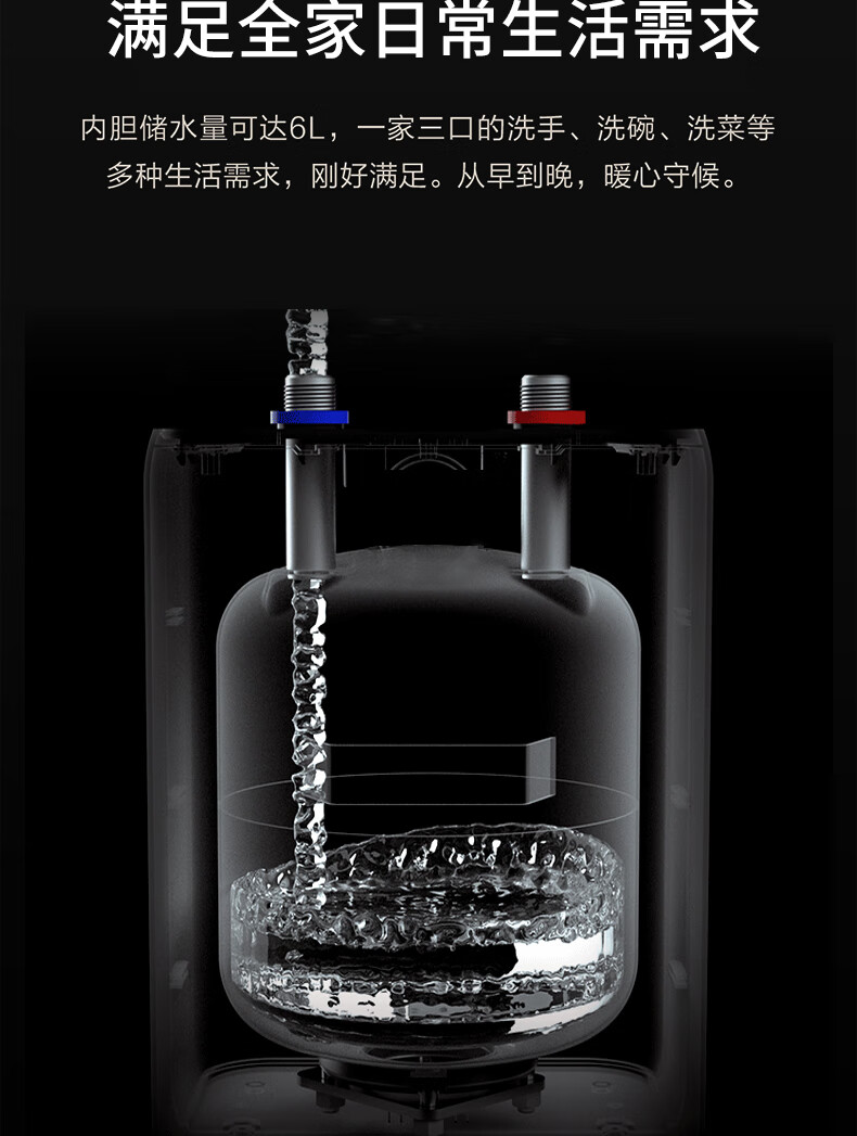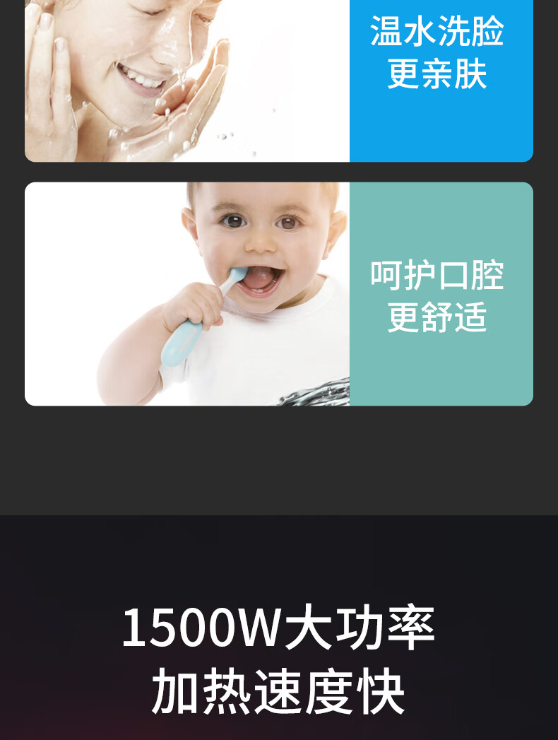 2、6L容量,1500W功率:四季温水常有,加热不等待。