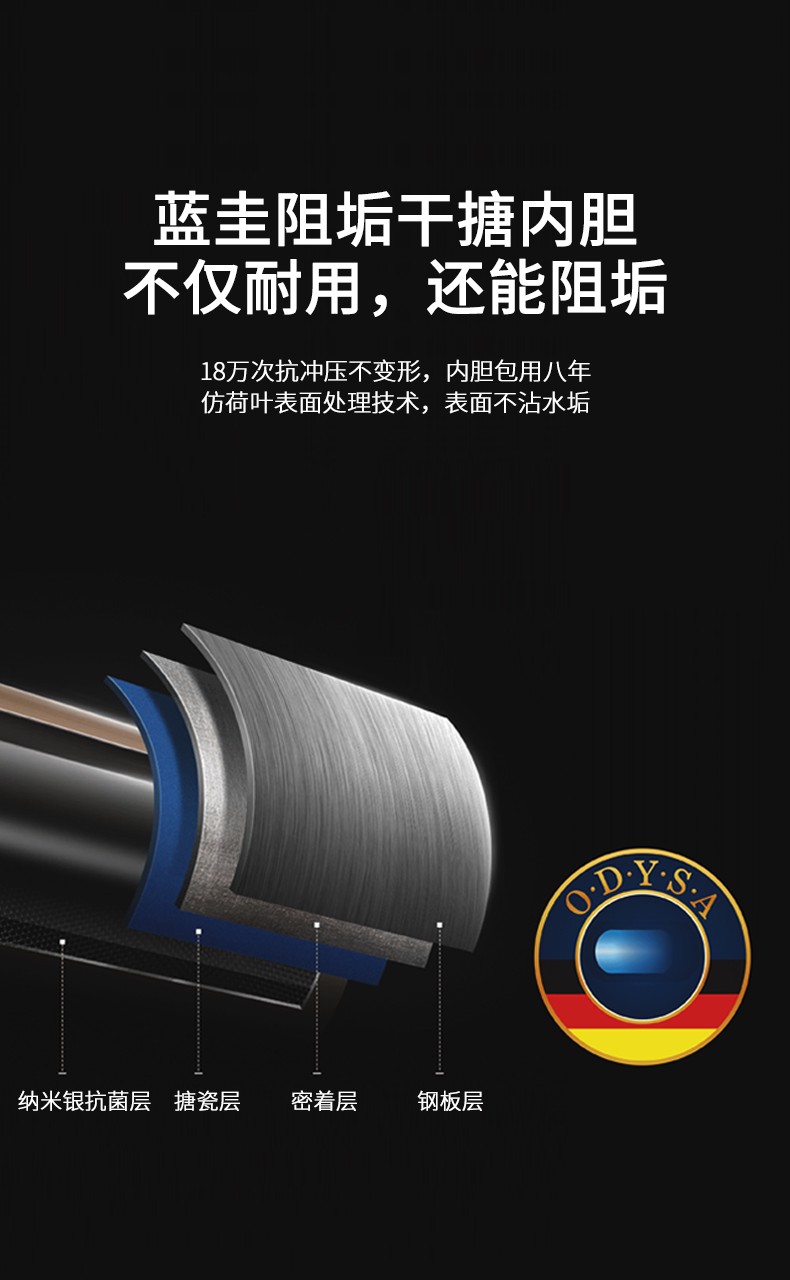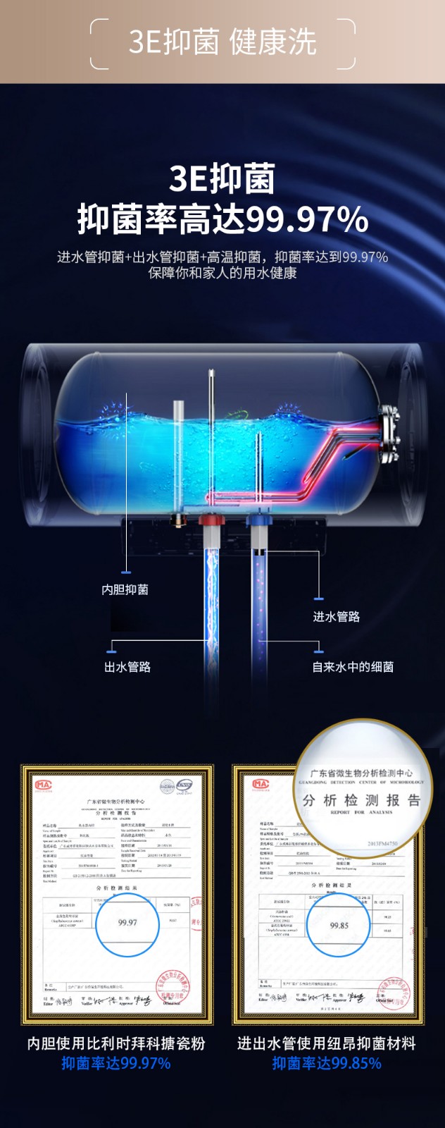 2、双效抑菌健康机:进出水管+内胆双效抑菌、杀菌率99.97%。