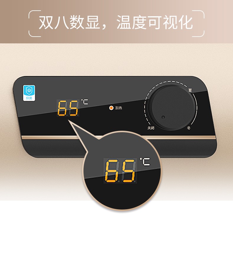 4、双八数码显示、机械调温:水温可见、简易操作。