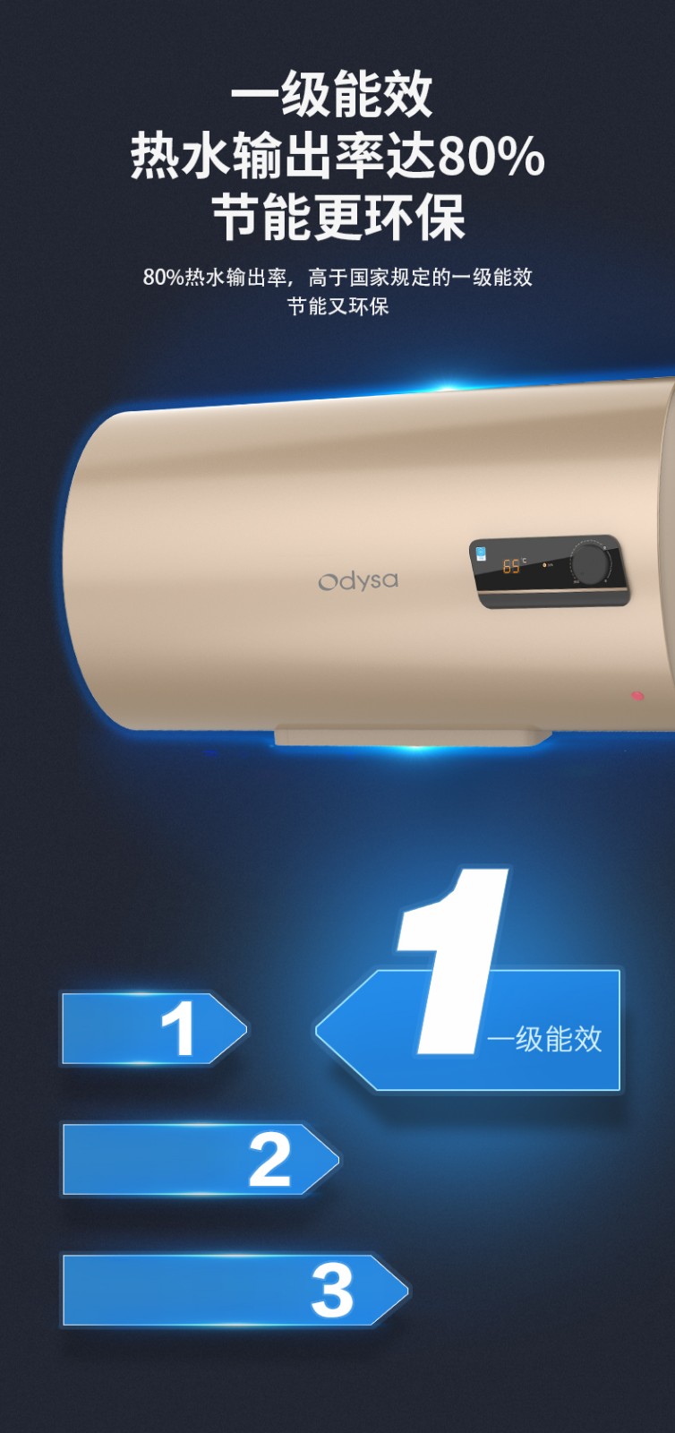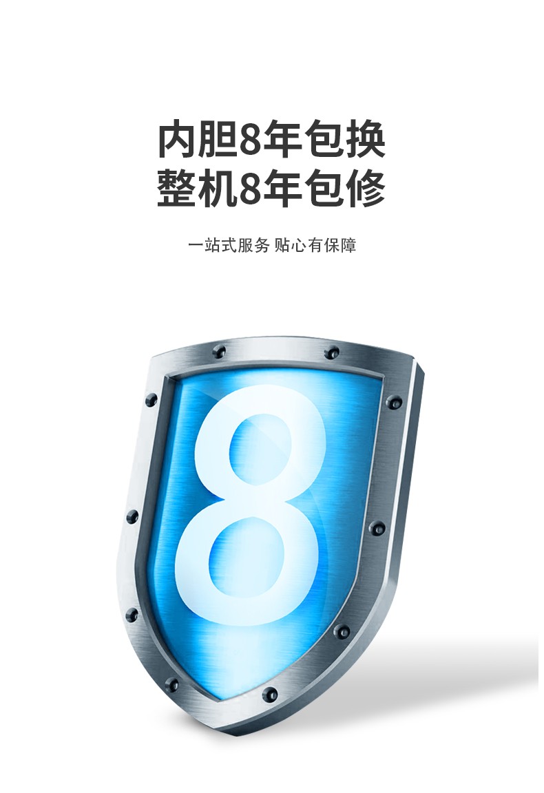 5、一级能效,80%超高热水率:大水量,畅洗无忧,节能省电,整机保用8年。