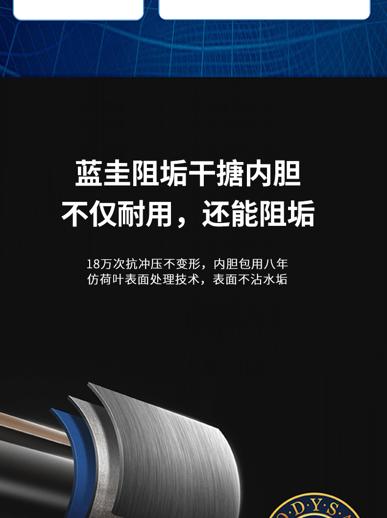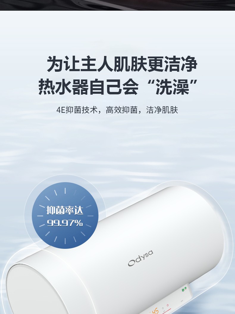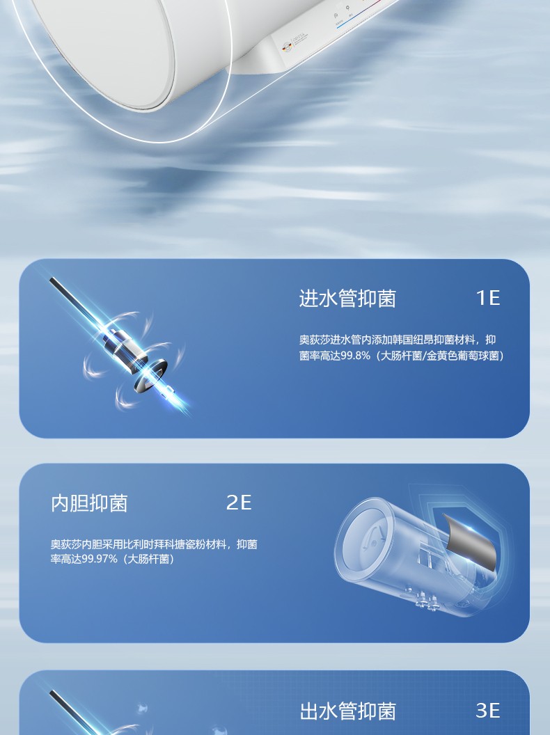 3、三效抑菌健康洗:进出水管+内胆+80度高温三重杀菌、抑菌率99.99%。