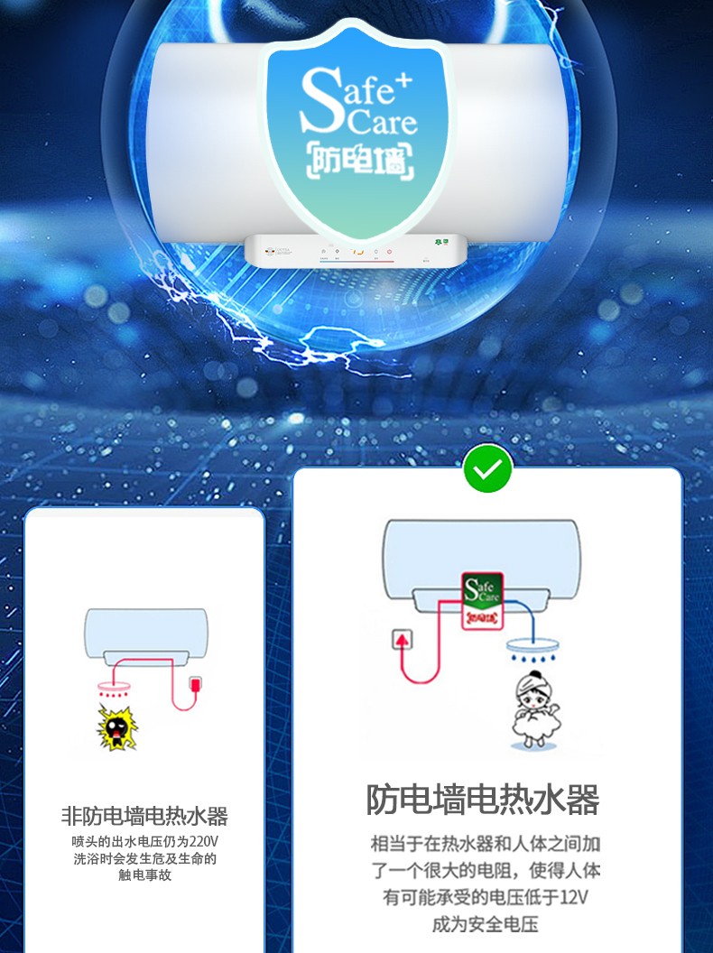4、专利防电墙+机身全绝缘:100%安全、不烧电源线、全屋家电漏电预警。
